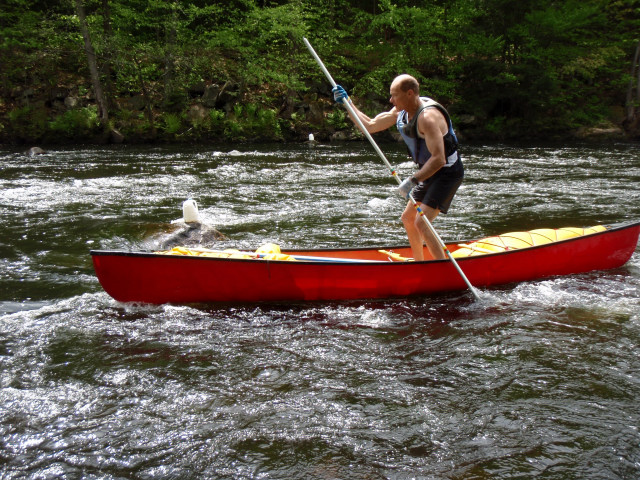 The river bottom was grabby, and we jammed a lot of poles today. Here Sean's pole gets stuck briefly.